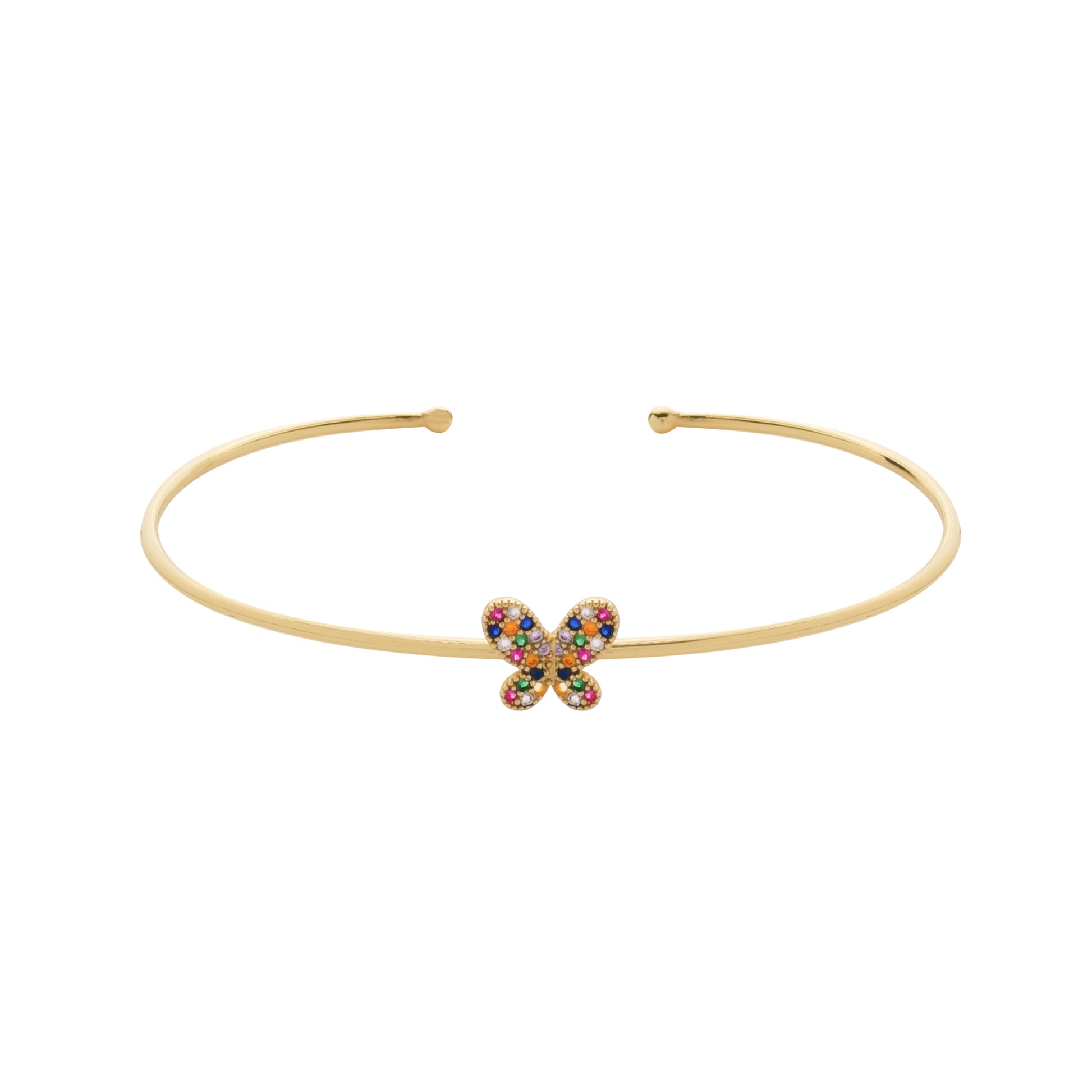 Bracelete Dourado com Borboleta Cravejada de Zircônia Colorida